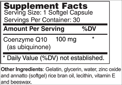 Co-Enzyme Q10 softgels contain pure co-enzyme Q10